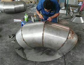 虾米弯头是管件中弯头的一种,虾米腰弯头很常用,下料制造很简单,但古板要领对现在工业的大管径弯头就操作困难,且很难包管精度。 南宁不锈钢板现可利用盘算机制图放样盘算出各点处素线长度,然后将卷管按同样的份数等份,在素线上用盘算出的长度截取线段,连接端点即可画出切割线。 壁厚处理要领:放样时,先划理论切割线,然后凭据壁厚确定最高、最低点(开出坡口后)切割线的位置,将两点连线后再盘算各平分点素线的长度,在卷管上划线切割,组对后就可以包管所需的角度。国家标准为02S403钢制管件(建筑标准图集)。材质一般为碳钢、不锈钢及合金钢。在日常施工中,虾米腰弯头比用原管及中板焊制的弯头使用要少得多。